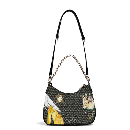 ModiToon Black Twill Faux Leather Chain Shoulder Bag | 모디툰 여성 체인숄더백 [블랙]